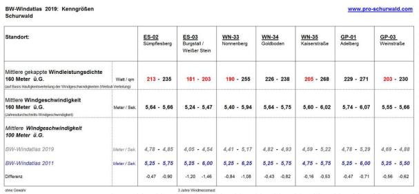 Alle Standorte auf dem Schurwald liegen unter dem Mindestrichtwert von 5,3 – 5,5 m / sec. des Windenergieerlass 2012 (Mittlere Windgeschwindigkeit in 100 m über Grund) .